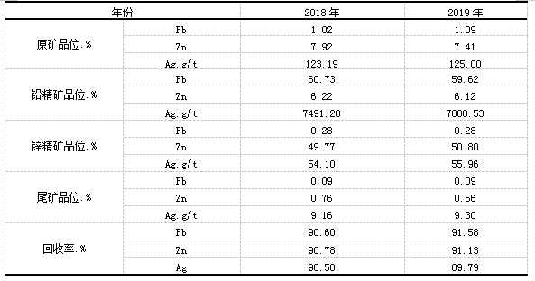 采礦廠將不同區(qū)域礦石分穿、分爆、分采、分裝、分運、分堆在原礦堆場,選廠根據(jù)不同堆存區(qū)域的原礦性質(zhì)的不同和月采礦計劃來合理、靈活的入選礦石,并保證入選的礦石采用對應的最佳工藝技術(shù)標準。此項工作于2019年正式實施,生產(chǎn)指標有了大幅的提高,國森礦業(yè)混合入選(2018年)與分區(qū)域(2019年)選礦選礦指標對比,具體見下表。