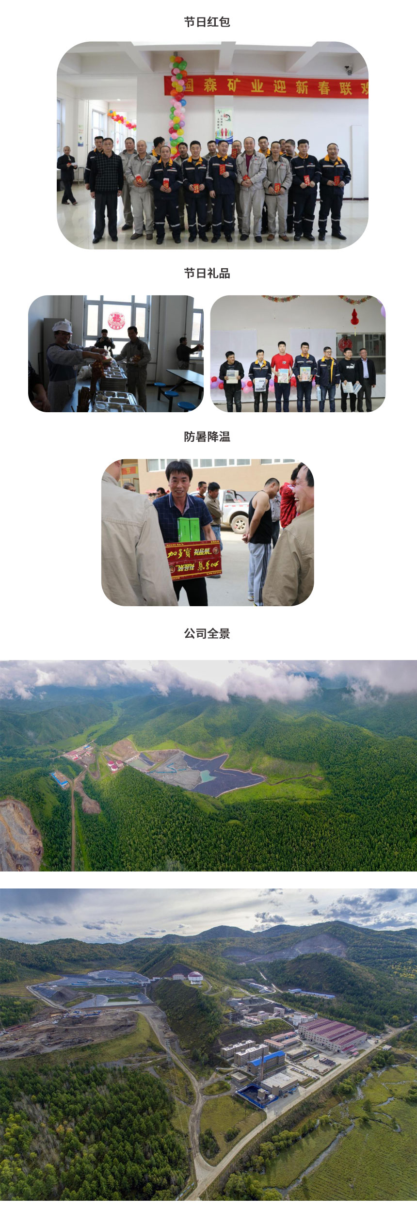 企業(yè)投入大量資金,保障員工生產(chǎn)、生活、健康,豐富員工業(yè)余娛樂生活,公司建有員工宿舍、食堂、浴室、商店、醫(yī)務(wù)室、活動室(配有乒乓球、羽毛26球、桌球、跑步機、健身器等),室外籃球場等生活設(shè)施,組織開展員工運動會、迎中秋、迎新春文藝晚會、演講比賽、安全知識競賽等文體活動,豐富職工的精神文化生活;不斷完善企業(yè)文化內(nèi)涵,激勵全體員工積極投身到公司的生產(chǎn)建設(shè)和綠色礦業(yè)建設(shè)之中。